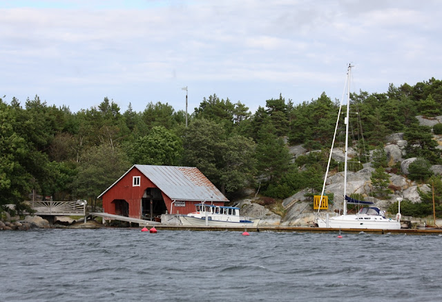 Lauantaiaamuna jatkoimme matkaamme Lappoosta reilut 45 mailia Utöhön. Heti satamasta ulos päästyämme nostimme isopurjeen ja keulaan uuden kisafokan. Se on musta ja siinä on hieno pyöröikkuna. Sitä se Kipparikin varmaan tuossa ihailee... Kisafokka on on suunniteltu keveissä tuulissa luovimieen ja lauantaiaamun 5-7 m/s tuuli 9 m/s puuskineen oli vähän ylimitoitettua sille. Sen verran saimme kuitenkin kokeiltua sitä sivutuulessa ja luovikulmassa, että se on sopiva, nätti ja toimii.